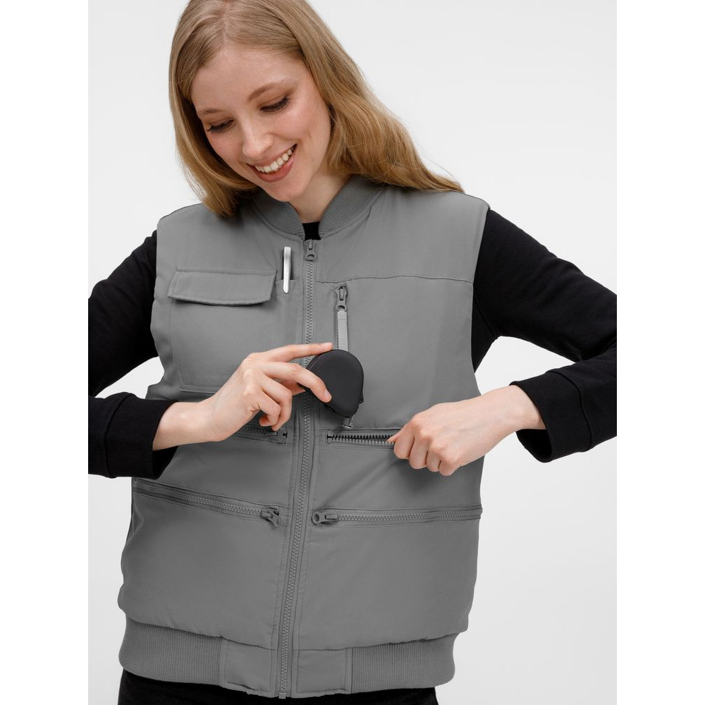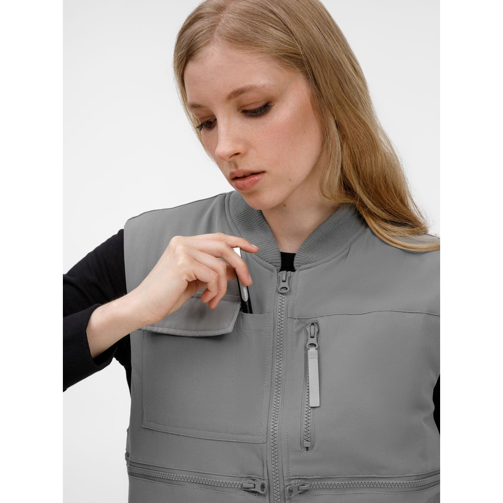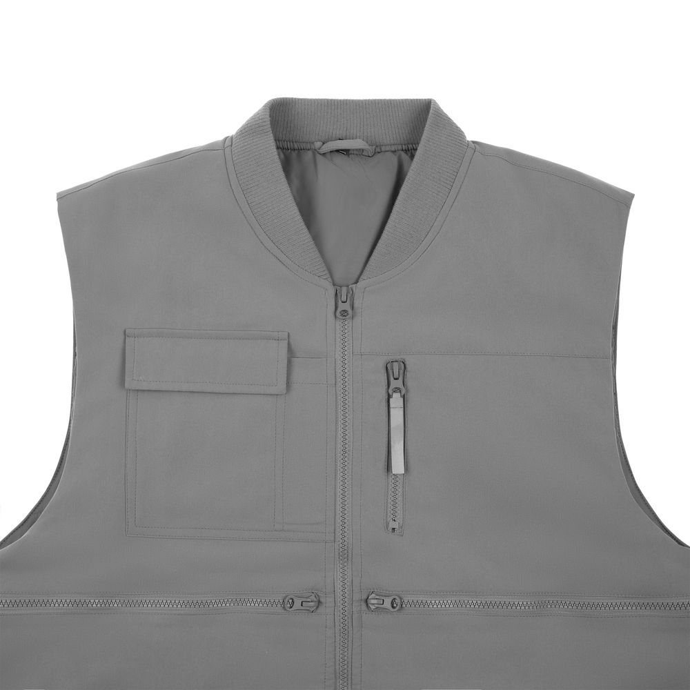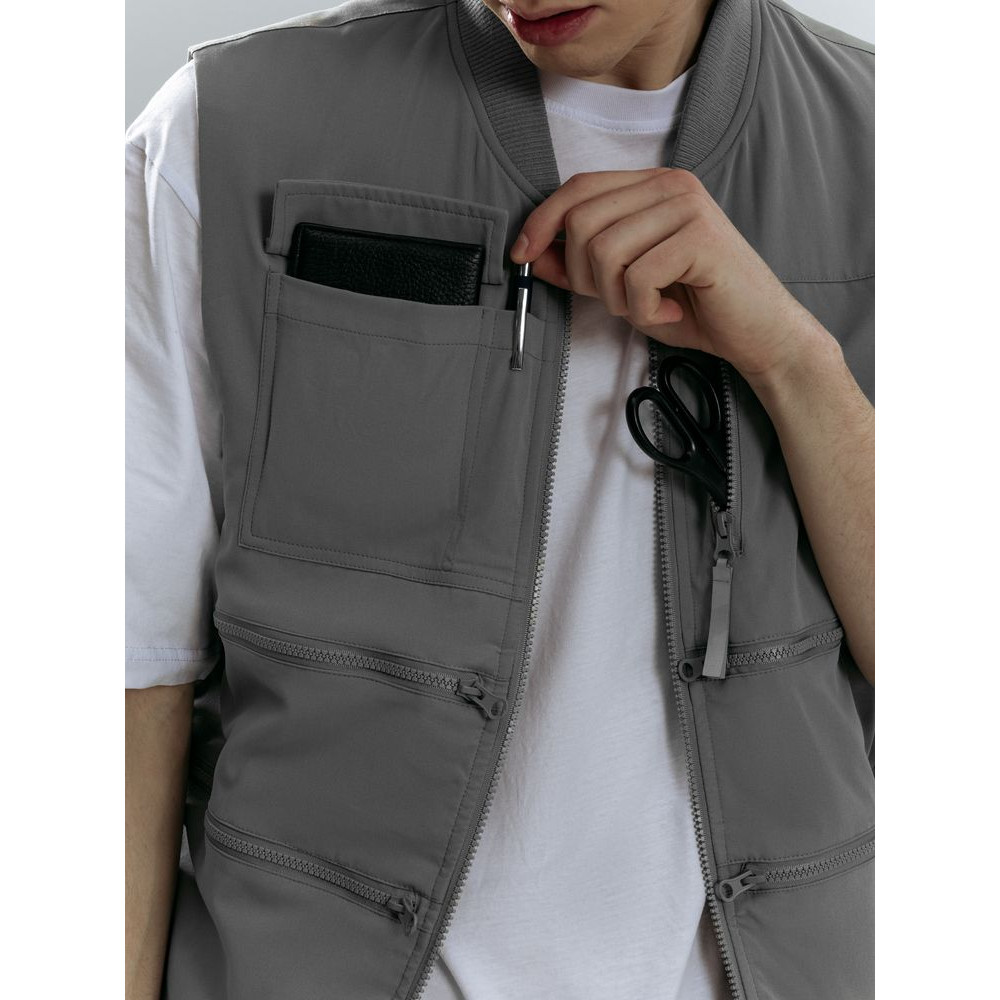 - 8 функциональных карманов, из них на передней части: 1 карман с клапаном для документов/рации, 1 карман для ручки, 5 вместительных на молнии, а так же 1 карман под планшет на молнии на спинке жилета