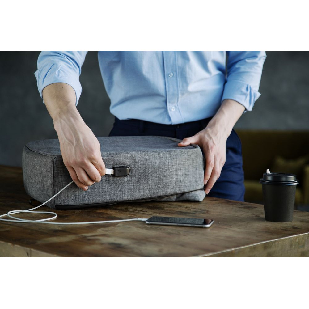 Для удобства пользователя с левой стороны рюкзака размещен внешний USB-порт для зарядки гаджетов: аккумулятор можно положить во внутренний кармашек. С InGreed путешествовать становится проще, ведь он удобно крепится на ручку чемодана.