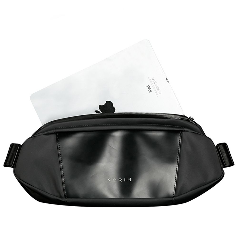 Модная эргономичная наплечная сумка FlipSling cделана из инновационного водоотталкивающего материала, устойчивого к порезам, трению и другим механическим воздействиям, в комбинации с искусственной кожей.
