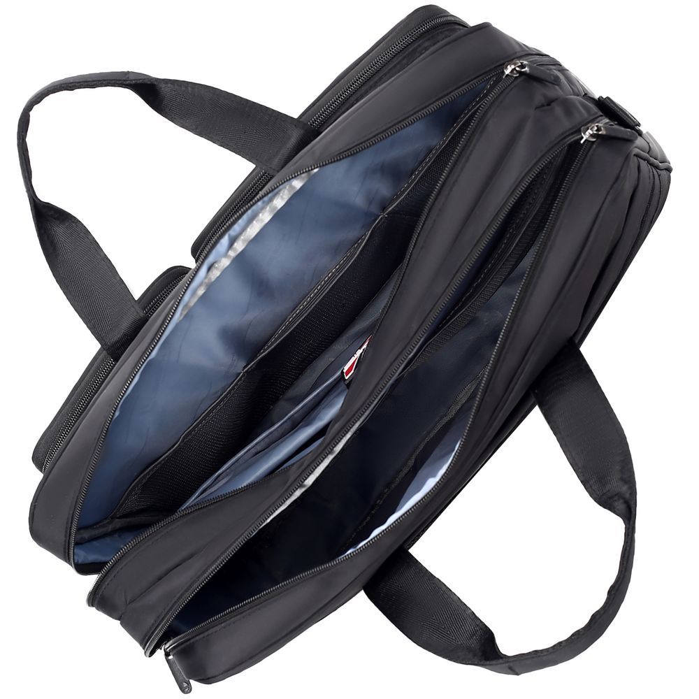 - Два основных объемных отделения с двойными застежками-молниями для удобного доступа к устройству, документам и личным принадлежностям