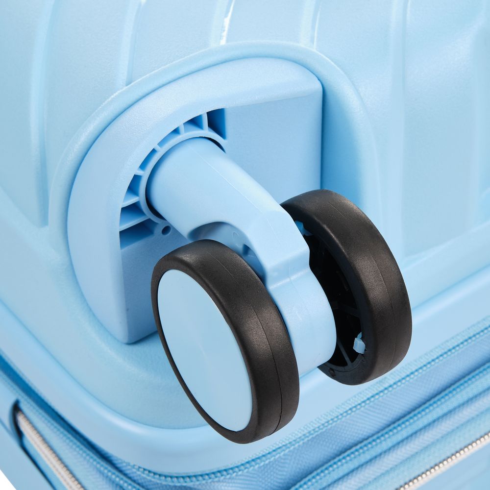 - Блок крепления колеса встроен в корпус чемодана, что обеспечивает лучшую устойчивость к внешнему воздействию