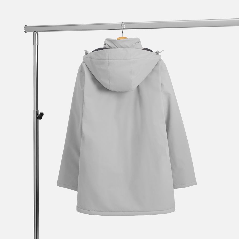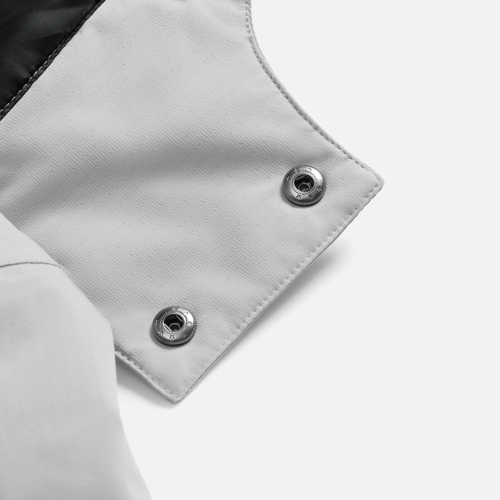 - Отстегивающийся капюшон с утяжкой и кнопками для плотного прилегания и защиты горла