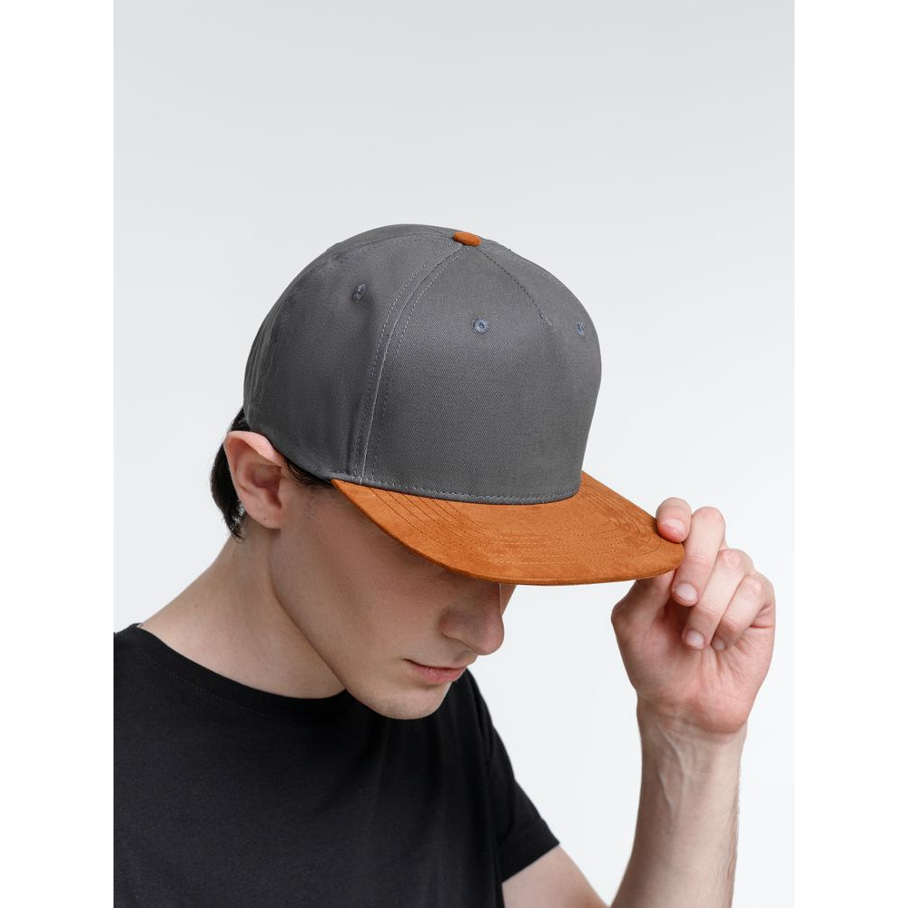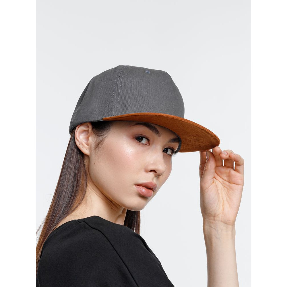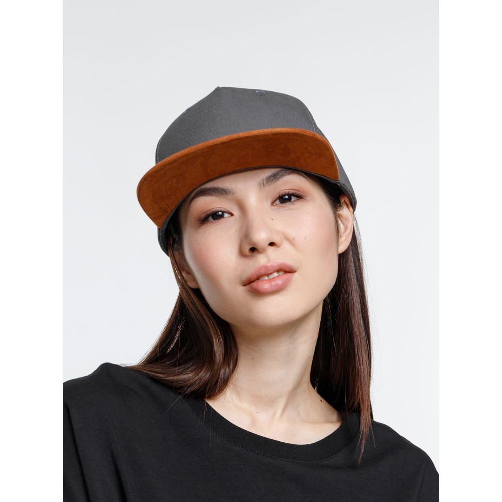 Бейсболка Foreside с прямым козырьком, серая с коричневым