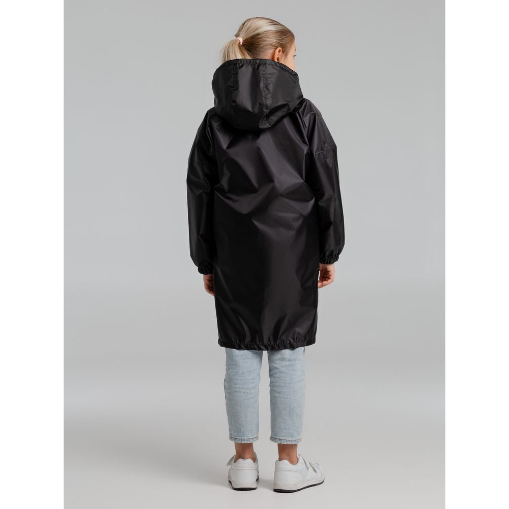 Детский дождевик на молнии из таффеты с влагозащитным покрытием. Складывается в мешочек — удобно брать с собой.