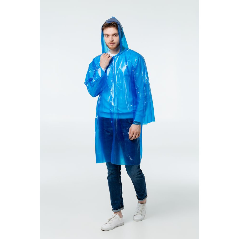 Дождевик-плащ с капюшоном и длинными рукавами из полиэтилена высокого давления (ПВД).
