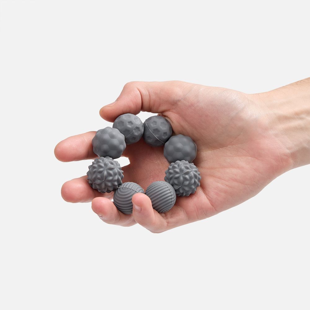 Шарики разной фактуры легко можно использовать как массажные.В комплекте: 8 шариков, мешочек, подарочная коробка на магнитном клипе.