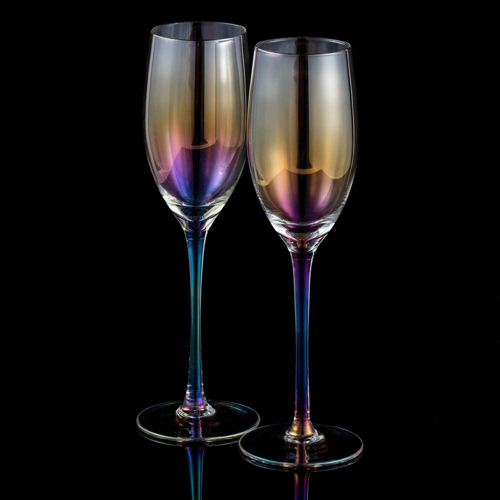 Бокалы для шампанского с перламутровым напылением Perola привлекают внимание своим изысканным дизайном. Переливающиеся разными цветами, бокалы зачаровывают и притягивают взгляды.