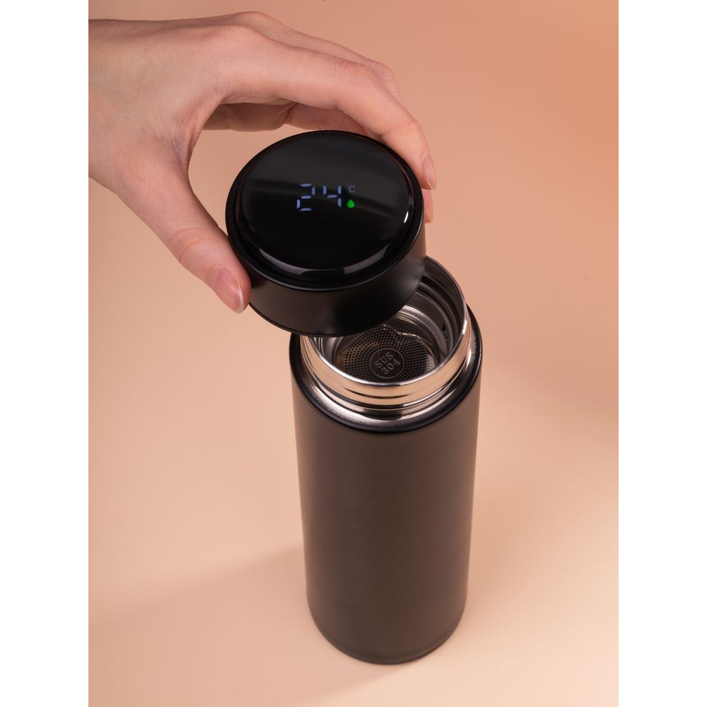 Смарт-бутылка с заменяемой батарейкой Long Therm, черная