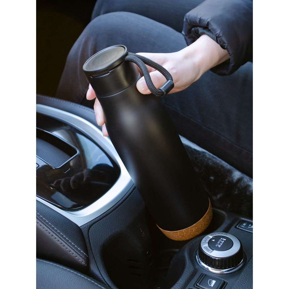 Контраст текстурной пробки на дне и матового покрытия делают термобутылку Steady не только практичным, но и стильным подарком.