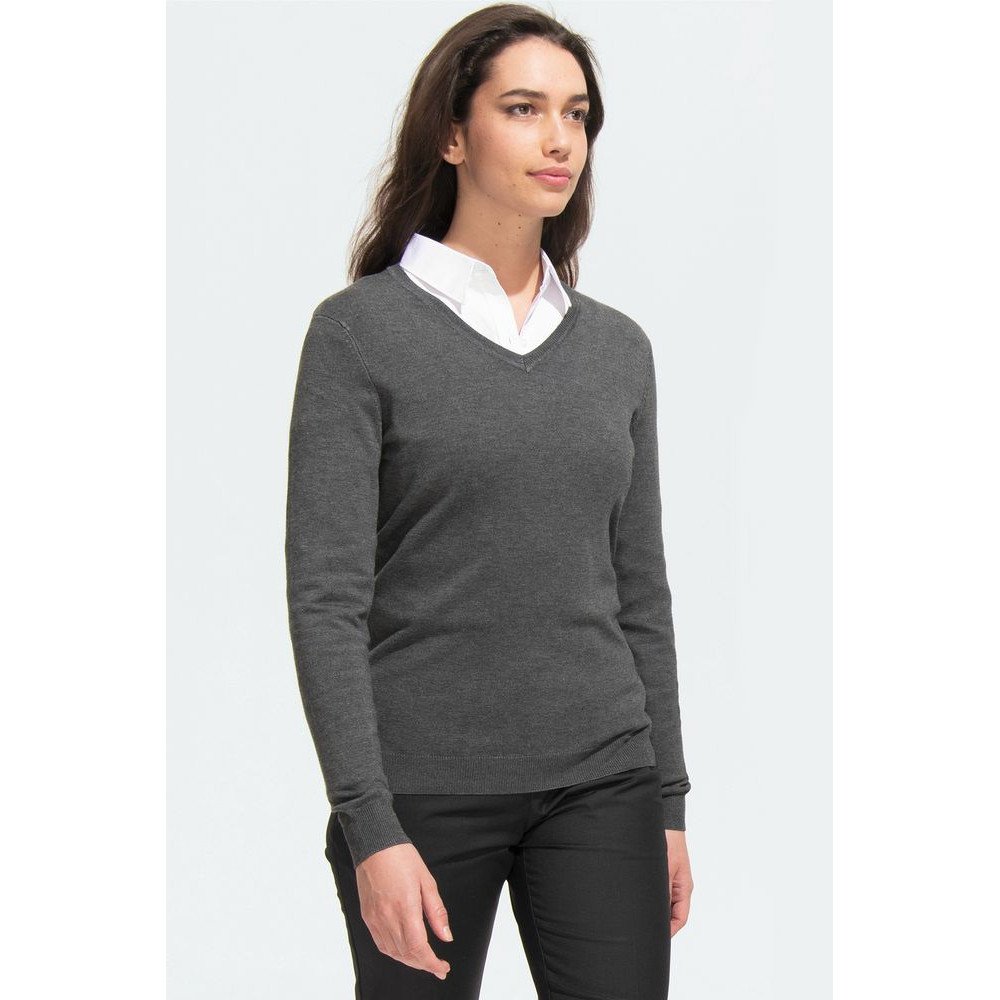 Приталенный джемпер с V-образной горловиной, который отлично сидит на фигуре.