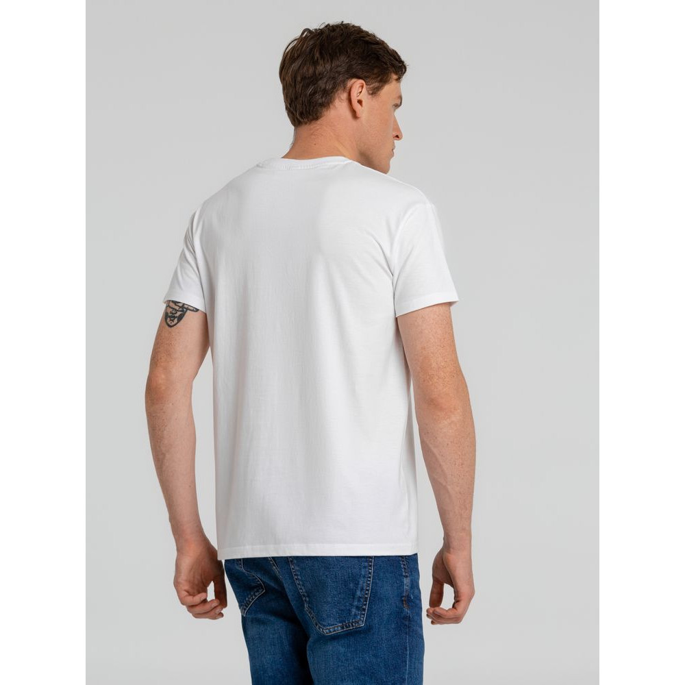 Мягкая, удобная плотная футболка, с воротником, защищенным от деформации. Отлично держит форму. Без боковых швов.