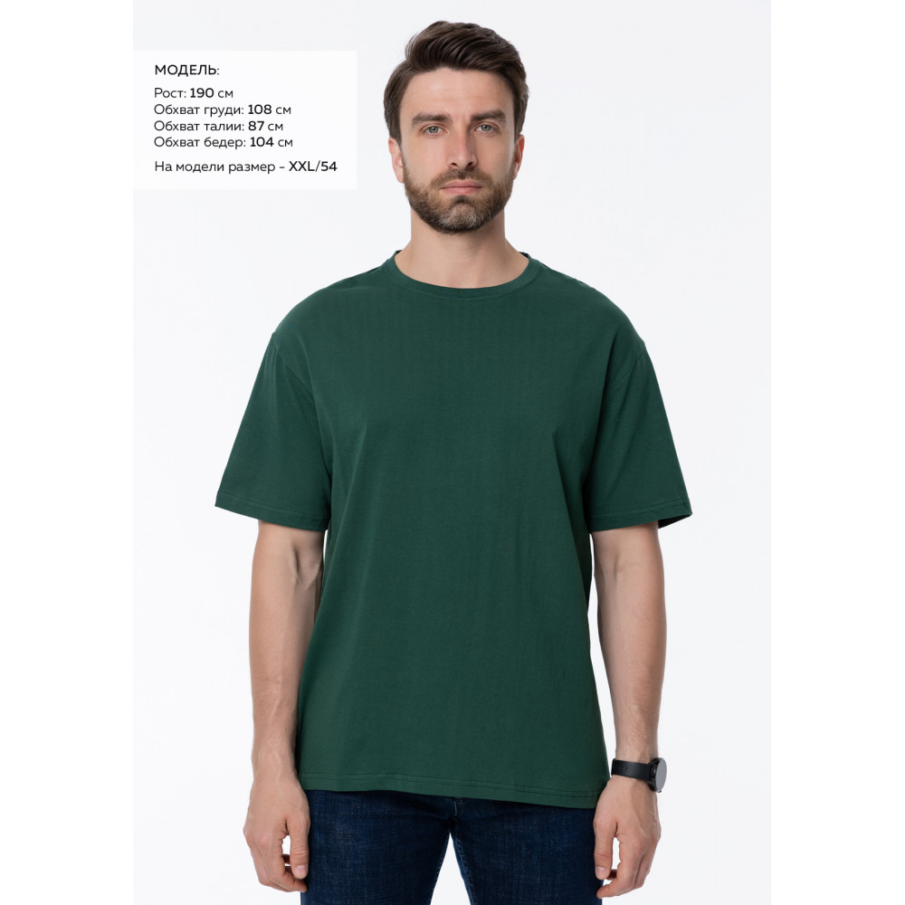 Размер мужской футболки: XXL/54. Параметры модели: рост 190 см.; обхват груди 108 см.; обхват талии 87 см.; обхват бедер 104 см.