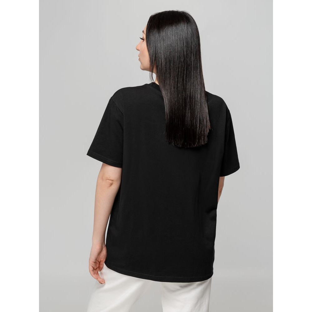 Футболка унисекс свободного кроя с боковыми швами. Благодаря тонким и длинным волокнам хлопка ткань футболки отличается гладкостью, ровностью и прочностью, отлично сохраняет форму, не деформируется и не выцветает при стирке.
