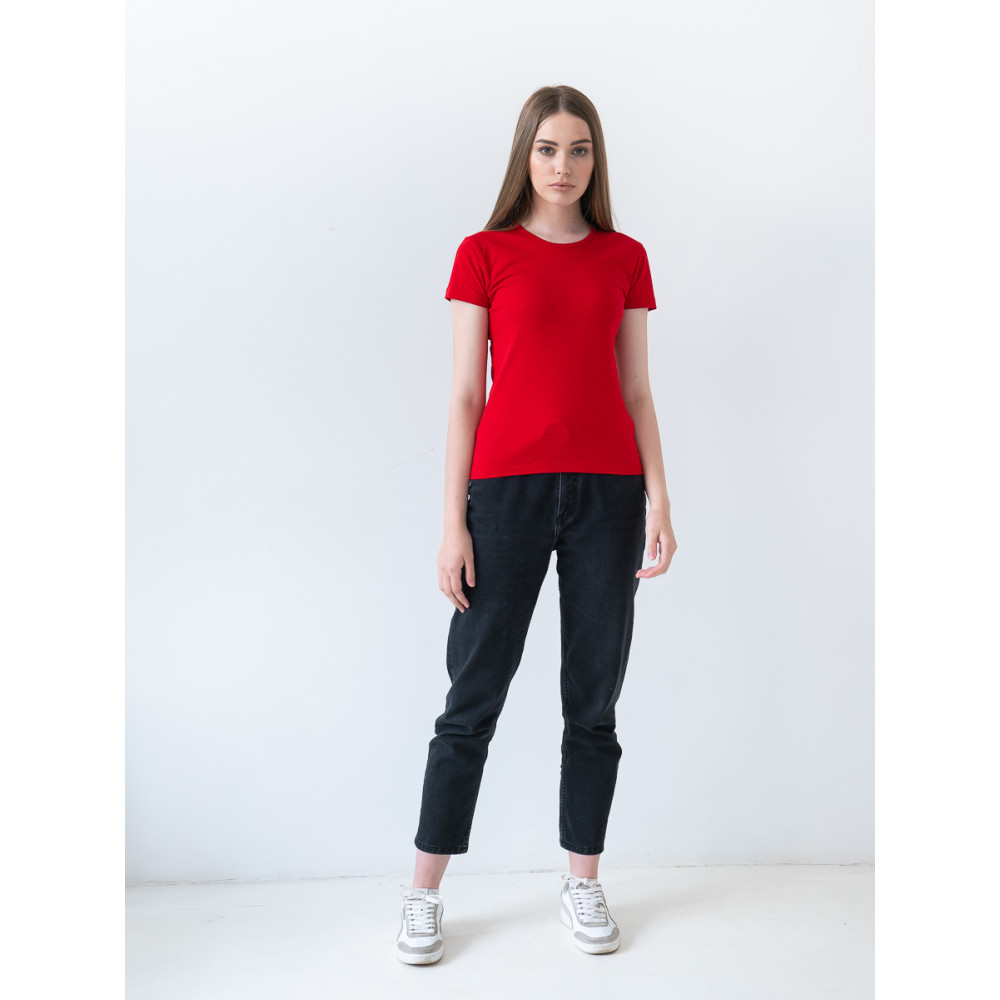 Женская футболка приталенного кроя с округлым врезом и втачным рукавом.