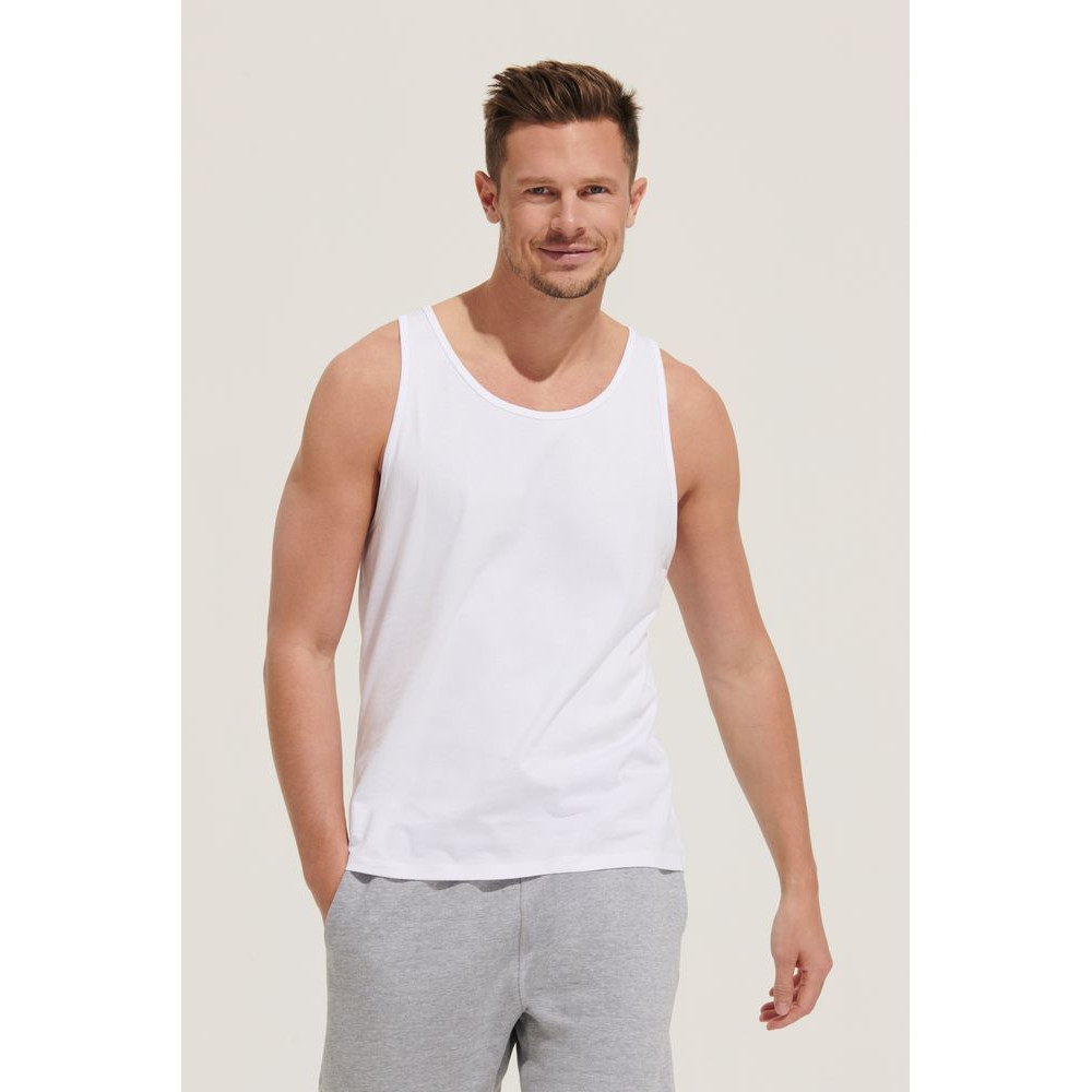 Удобная свободная посадка с глубокими проймами. Горловина и проймы обработаны бейкой. С боковыми швами.