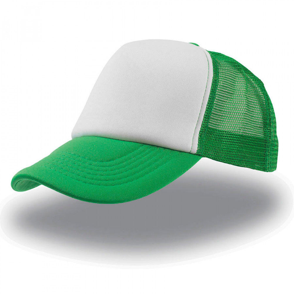 Параметры: Бейсболка "RAPPER", 5 клиньев, пластиковая застежка, зеленый с белым; 100% п/э, плотность 80 г/м2