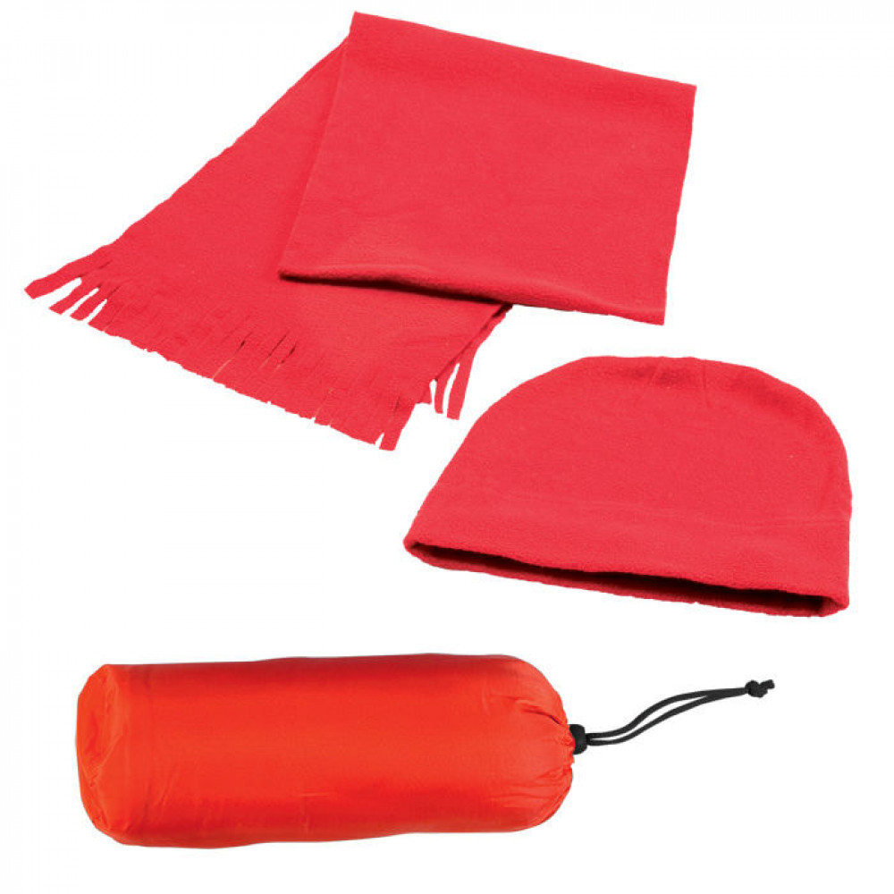 Флисовый набор "Winter" шапка и шарф в чехле, красный, флис, 180 гр/м2