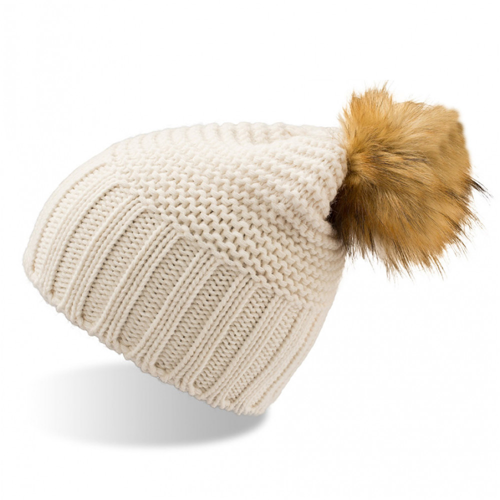 Элегантная шапка, сочетающая в себе два вида вязки, выполнена из высококачественной итальянской пряжи. Шерсть в составе поможет сохранить волосы чистыми и опрятными. Пушистый и приятный помпон из искусственного меха имитирует натуральный. При этом он гипоаллергенен и более практичен в уходе.