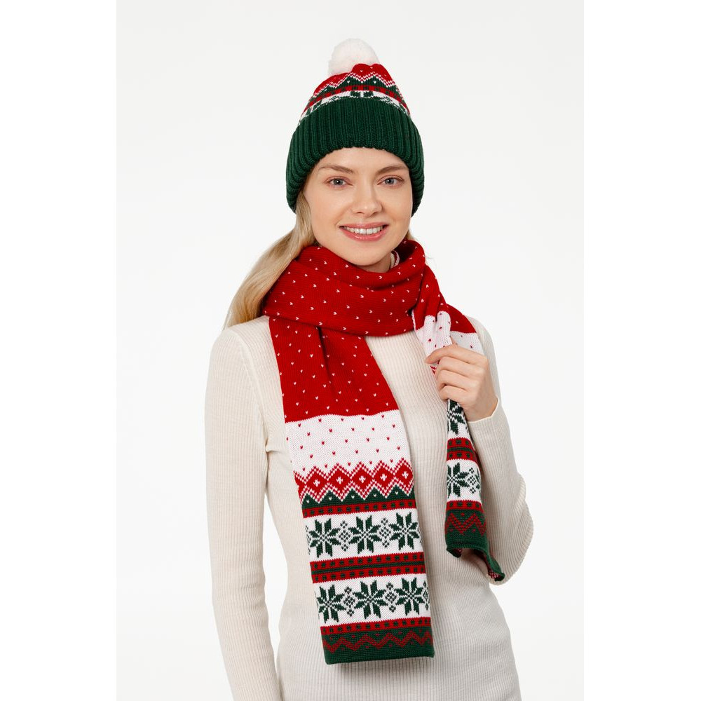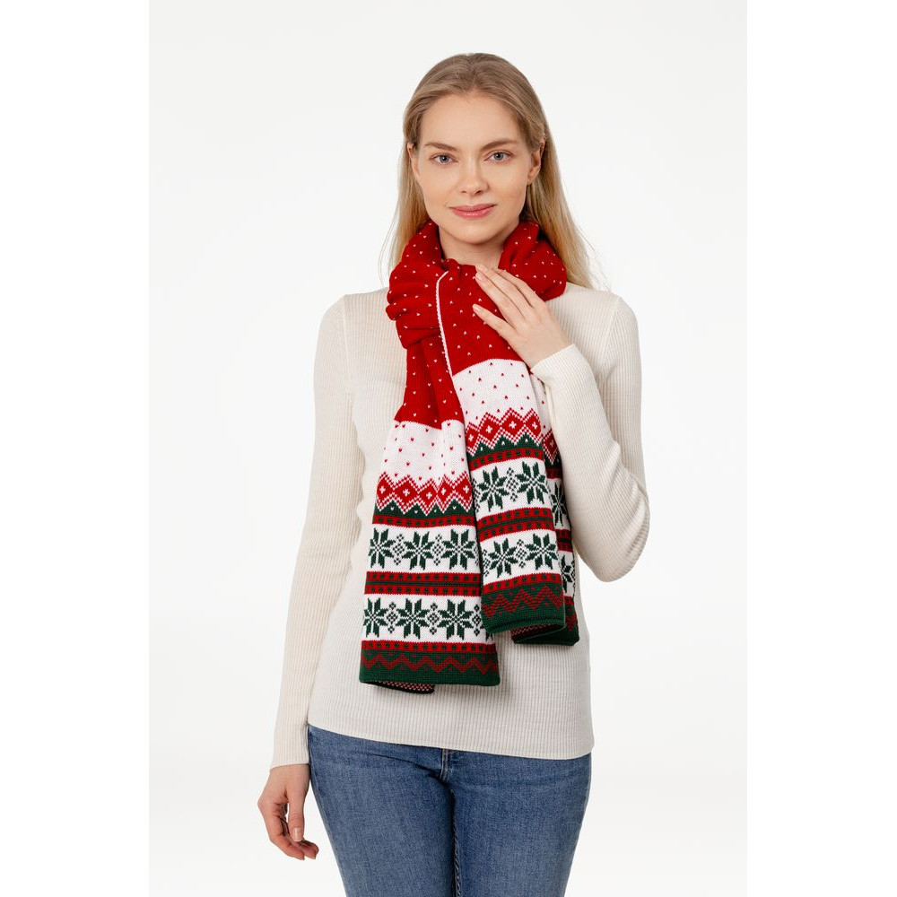 Шарф Happy View — это настроение волшебных рождественских фильмов, переданное через традиционный орнамент и классическое сочетание цветов.
