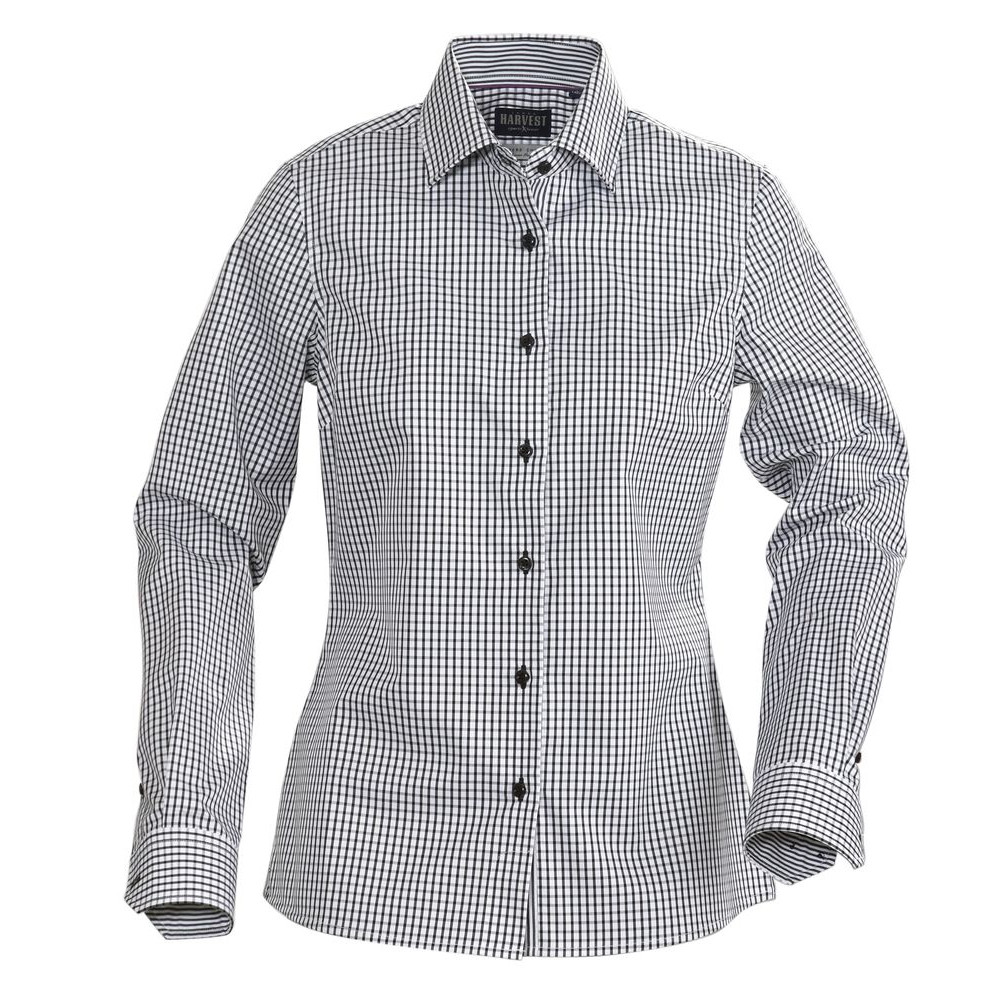 Приталенная женская рубашка из гребенного хлопка качества Easy Care (легко утюжить). Классический узор в клетку с контрастной отделкой оборотной части воротника, изнанки манжет и планки пуговиц. Упрочненные швы воротника и манжет. Прошитые складки на спине.