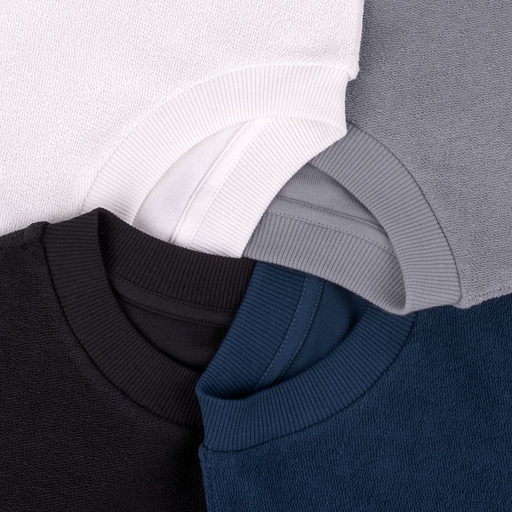 Благодаря особой конструкции, где часть деталей — перед и спинка — вывернута наизнанку, свитшот приобретает запоминающийся вид. Так внутренняя, обычно незаметная сторона материала превращается в лицевую: миниатюрные петельки бывшей изнанки становятся настоящим украшением толстовки, добавляя ей оригинальности и эффект невероятно приятной плюшевости.