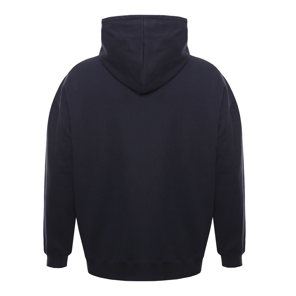 Толстовка силуэта oversize с капюшоном комфортной глубины, спущенной линией плеча и глубоким карманом. Крой дополнен акцентной молнией, а горловина и спинка модели укреплены киперной тесьмой.