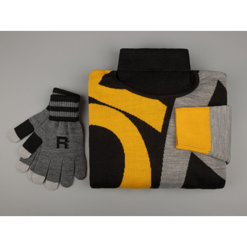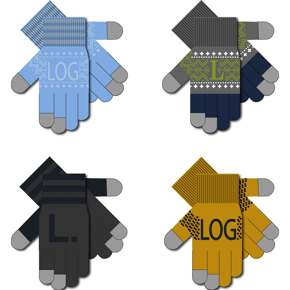 Модель: цельновывязанные бесшовные перчатки с эластичной манжетой и жаккардовым узором в 2-3 цвета. Три пальца: средний, указательный, большой — вяжутся с использованием токопроводящей нити. Манжета может быть полосатой (только горизонтальные полосы 1-2 цветов, без узора и логотипа).