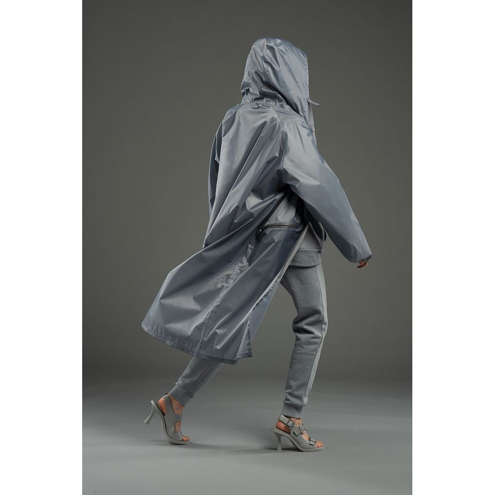 Плащ-дождевик на молнии с капюшоном из ткани таффета с полиуретановой пропиткой для защиты от сильного дождя.