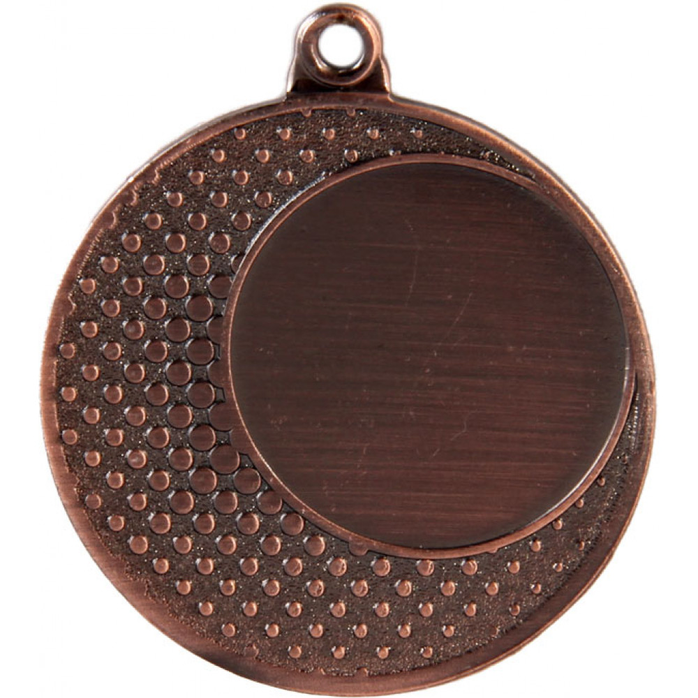 Медаль круглая металлическая, изготовлена из недрагоценного металла. Диаметр 40 мм, толщина 1,5 мм. Цвет медали, имитирующий золото/серебро/бронзу.¶Сверху расположено круглое ушко диаметром 5 мм для крепления ленты (подходит только лента с карабином).¶Аверс медали - в правой верхней части расположено место под вкладку, диаметром 25 мм, имеющее тонкий кант, соприкасающийся с основным краем медали. По всему полю медали, кроме места под вкладыш, располагаются многочисленные точки (маленькие кружочки) диаметром около 1 мм каждый, уменьшающиеся к краю медали, выполненные поднятым рельефом. Кружочки расположены в 7 рядов. На медали нет никаких других изображений, нет рисунков, относящихся к конкретному виду спорта, нет обозначения места. Реверс медали – ровный, без выпуклости.