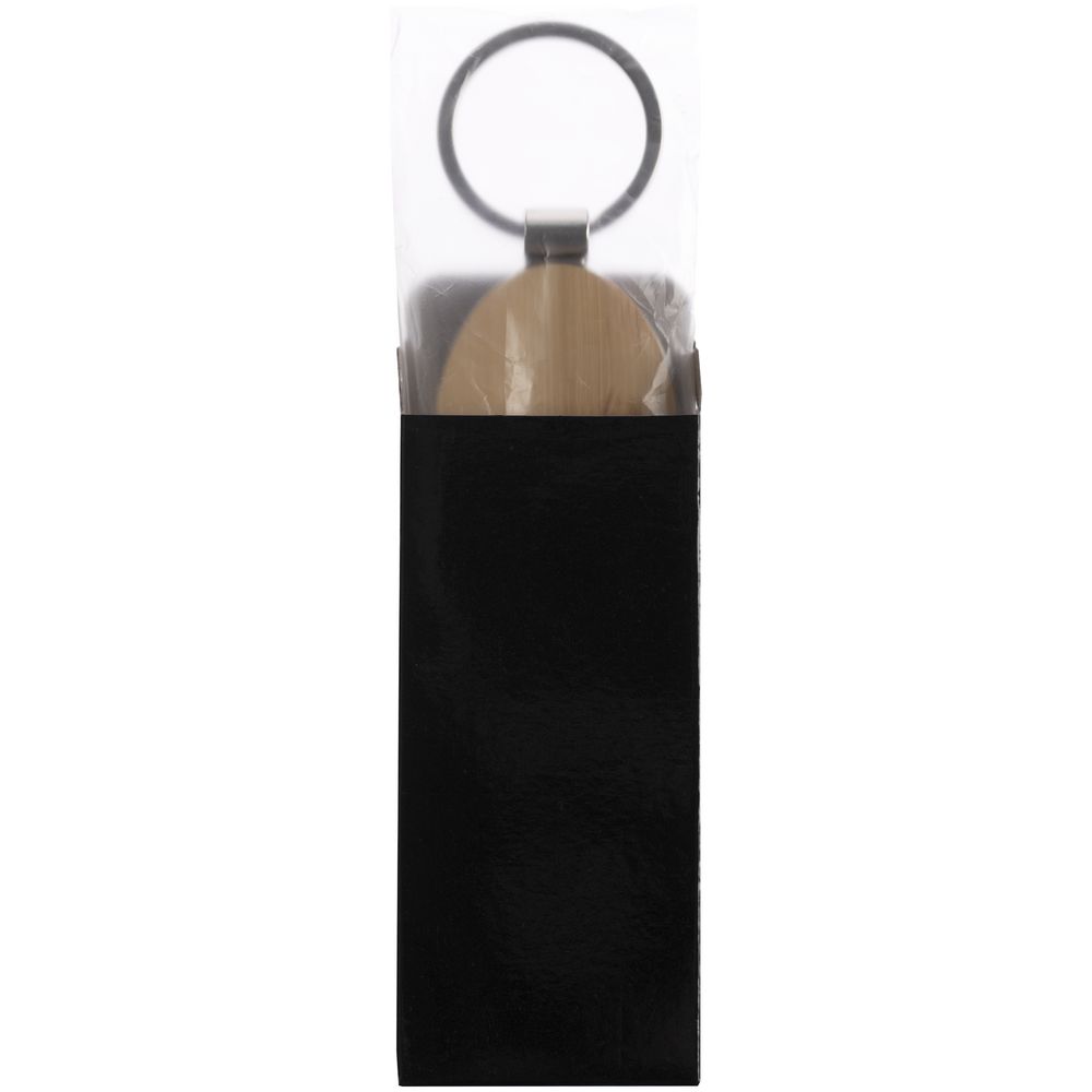 Металлический брелок со вставкой из бамбука. Подойдет для клиентов, отдающих предпочтение качественным натуральным материалам.