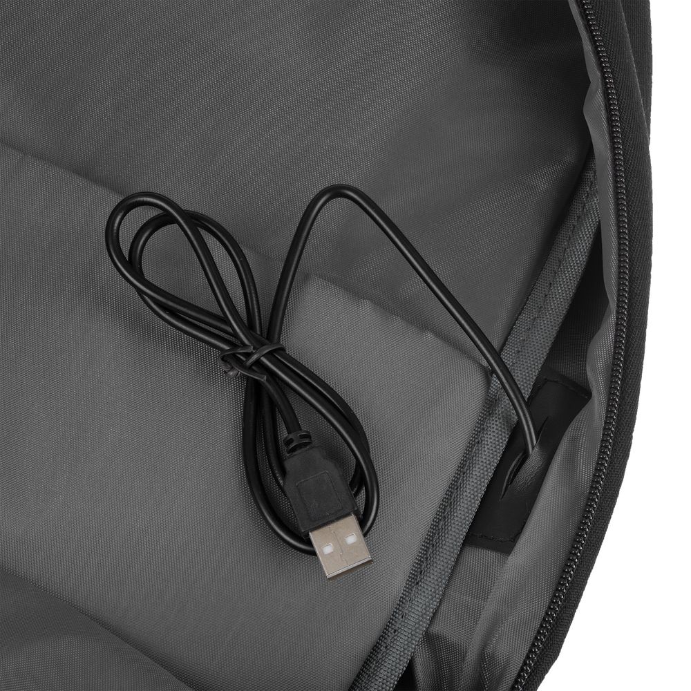 - Внешний USB-порт для зарядки гаджетов (внутри рюкзака — провод для подключения)