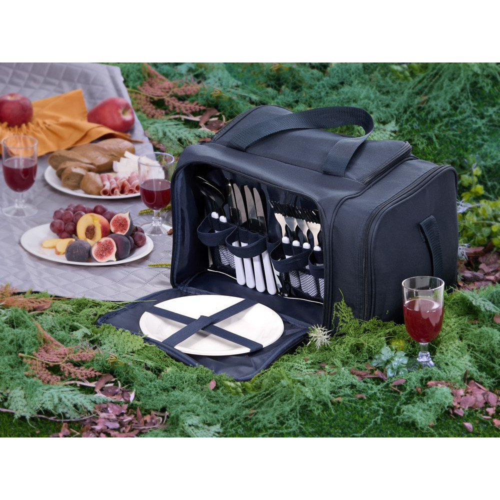 Campello — это продуманный комплект для идеального выездного фуршета на небольшую компанию. Здесь есть необходимые столовые приборы на 4 персоны, а также открывалка и практичные пластиковые бокалы для вина — все, что нужно, чтобы подкрепиться и расслабиться во время чудесного отдыха на природе!
