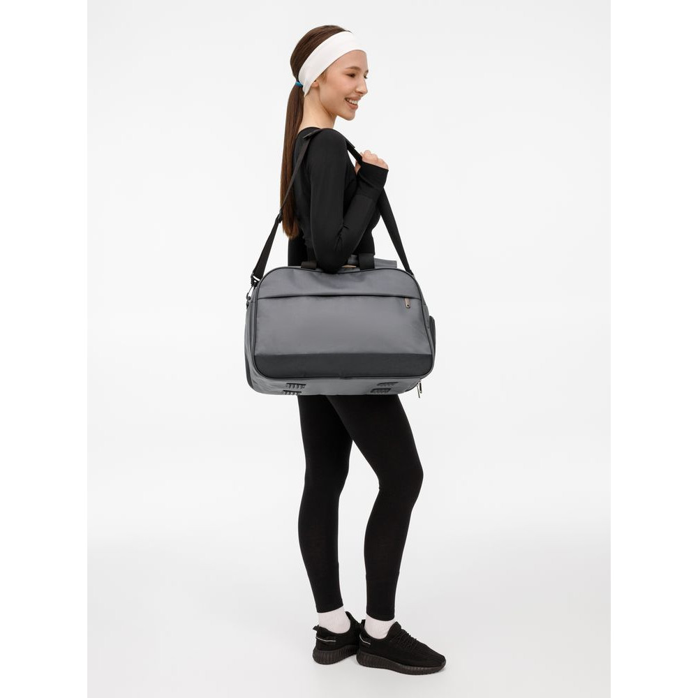 Усиленное дно с рифлеными ножками защищает сумку от износа, а боковое отделение с вентиляцией идеально подходит для обуви. Сумка оснащена удобными ручками и регулируемым плечевым ремнем, что обеспечит комфорт при переноске.