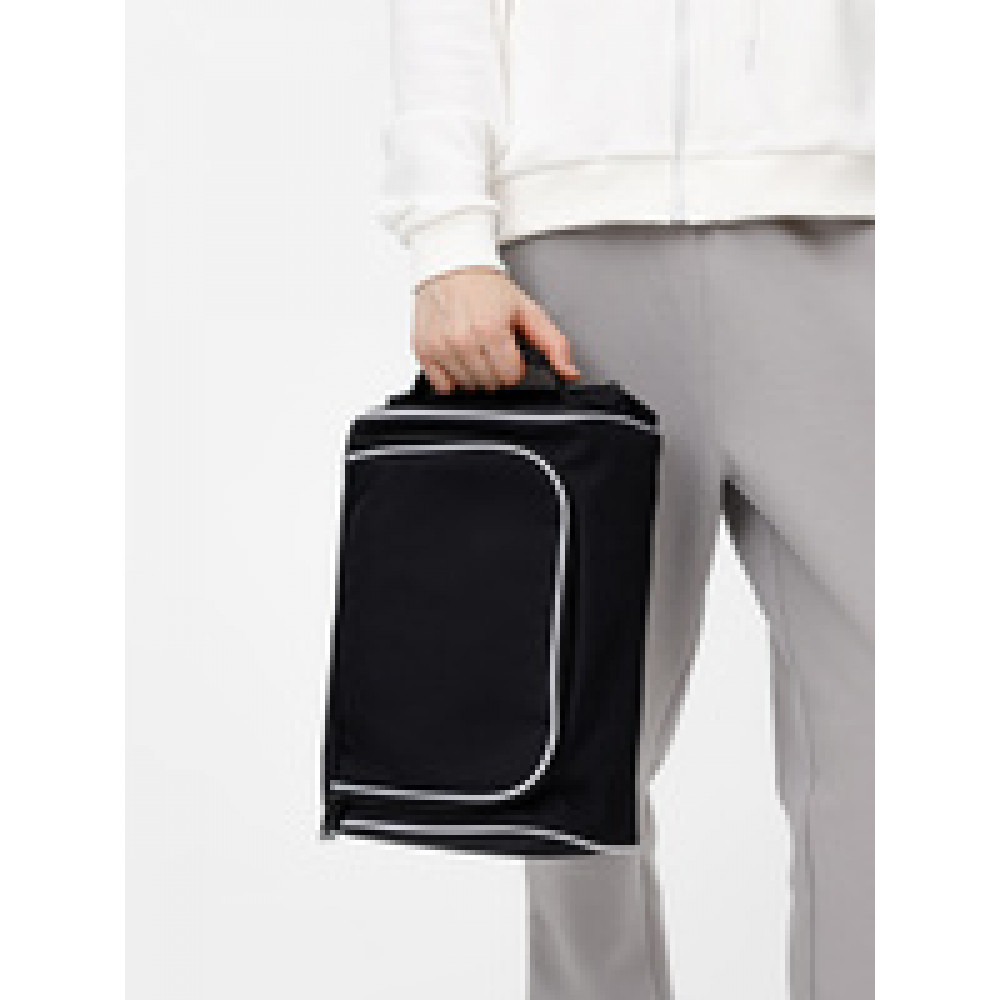 Благодаря боковой ручке Equipex удобно нести отдельно или доставать из большой спортивной сумки. Внешние и внутренние карманы позволяют хранить рядом с парой обуви важные мелочи: средства и аксессуары для ухода, пластыри или запасные носки. В нижней части сумки расположены вентиляционные вставки для проветривания.