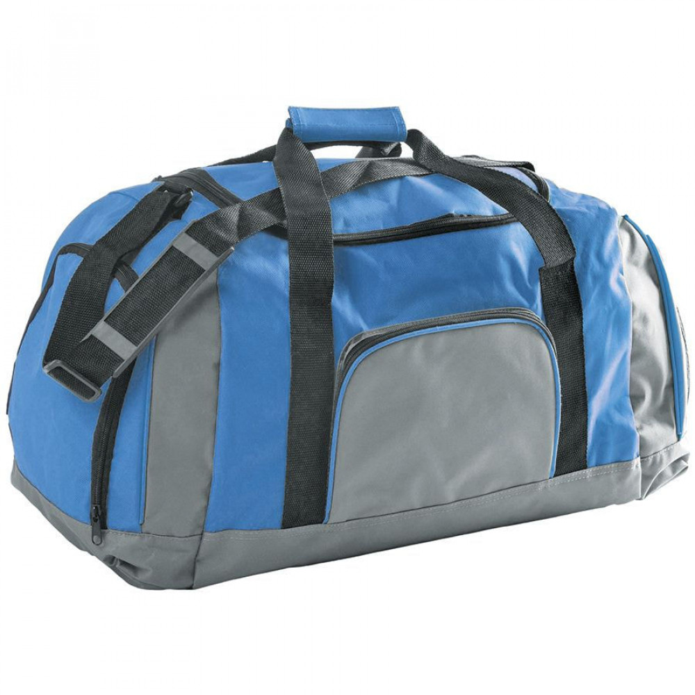 Параметры: Сумка дорожная; серый с голубым; 60х34х28 см; полиэстер; шелкография
