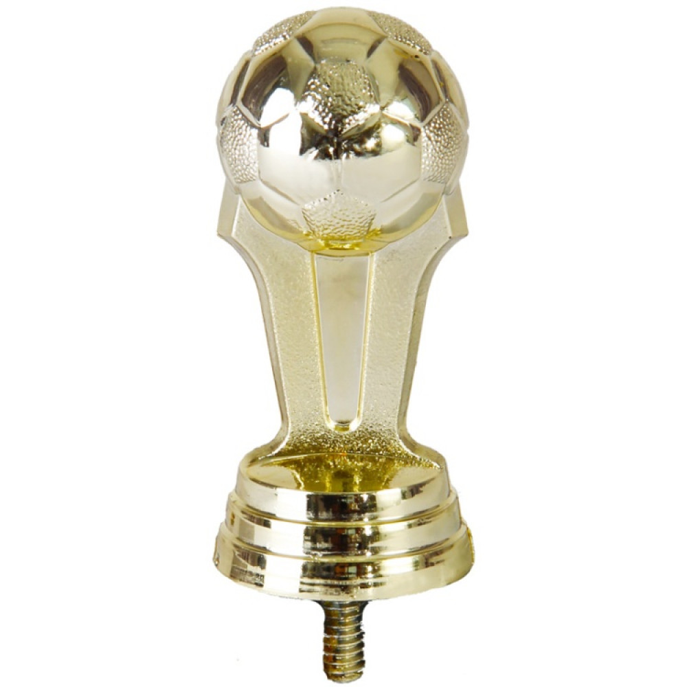 Цвет: золото, материал: пластик. Вид спорта: футбол. Фигурка выполнена в виде перевёрнутого вытянутого конуса. Вверху края сбоку скошены под наклоном. Сверху фигурку украшает объёмный футбольный мяч, украшенный многоугольниками. Фигурка выполнена в золотом цвете, что придаёт ей роскоши и уникальности. Ниже - круглое основание, на котором имеются горизонтальные линии. Фигурка выполнена в золотом цвете. Высота, см: 7.6 Вес, кг: 0.035. Фигурку возможно закрепить на цоколь, постамент или кубок.