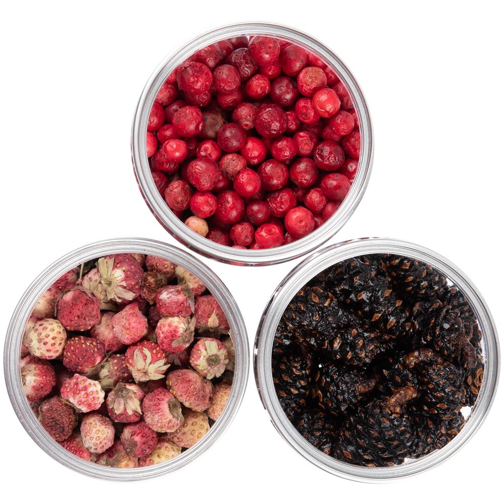 Погрузитесь в мир природы с набором Flow Lab! Этот уникальный микс сочетает в себе ароматный чай-разнотравье, наполненный яркими нотами лесной клубники, сублимированную бруснику и ароматные вяленые шишки. Чай дарит свежесть и сладость, брусника добавляет пикантную кислинку, а вяленые шишки придают набору неповторимый лесной характер.В набор входят: