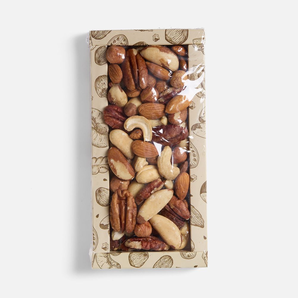 Состав: ядро бразильского ореха, орех пекан, ядро фундука, ядро миндаля, орех кешью.