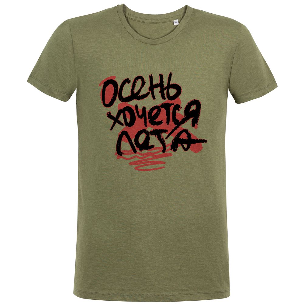 Футболка мужская приталенная «Осень хочется лета», меланж хаки