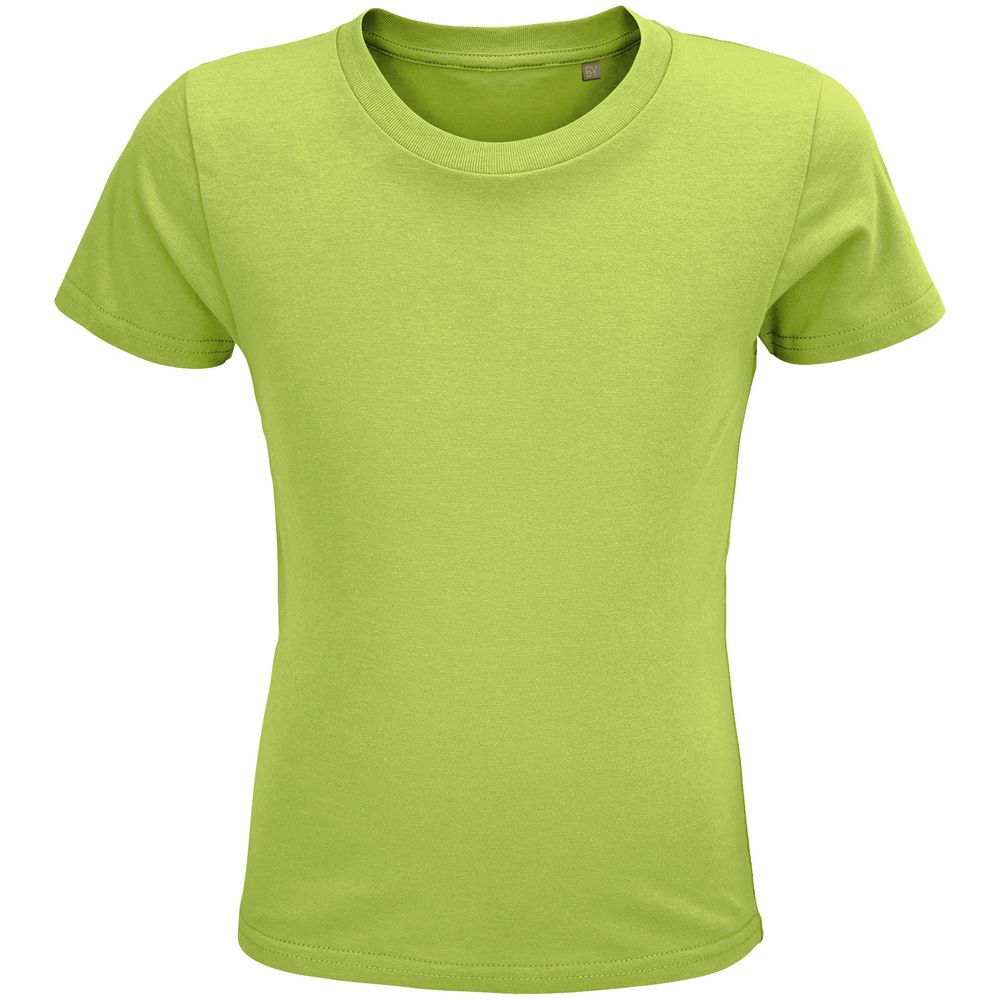 Детская кроеная облегающая футболка из органического хлопка с круглым вырезом.