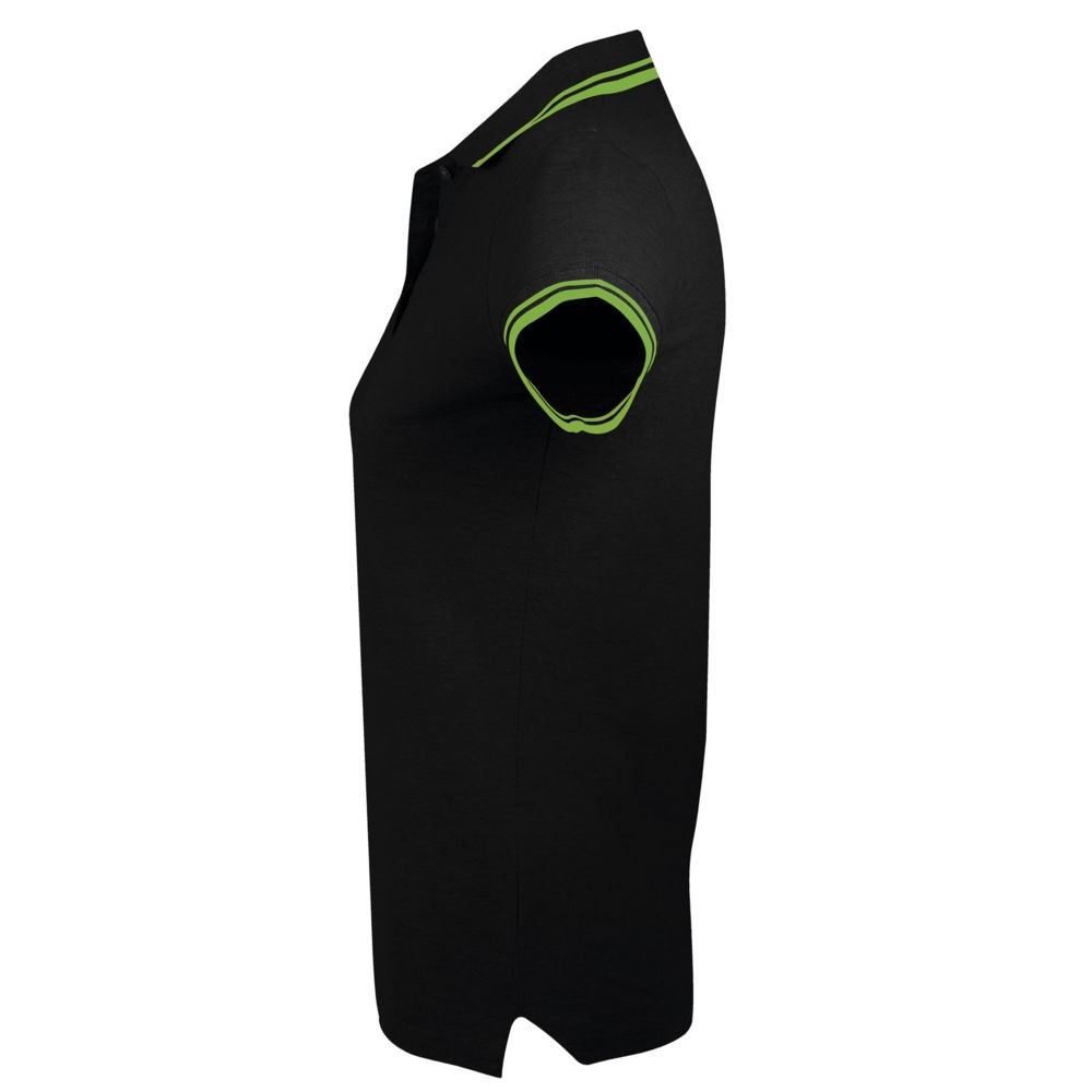 Рубашка поло женская Pasadena Women 200 с контрастной отделкой, черная с зеленым