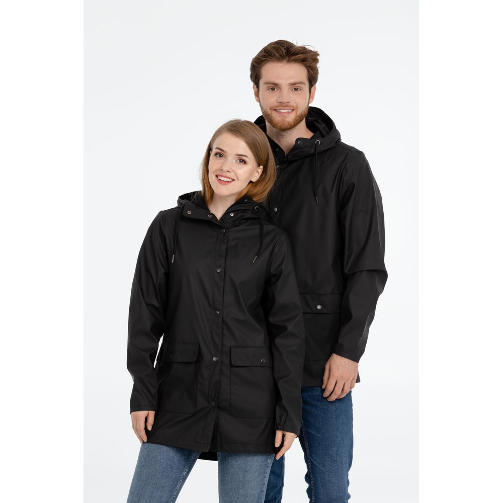 Стильный и практичный дождевик на кнопках из матового водонепроницаемого и ветрозащитного материала. Благодаря сварке ультразвуком швы абсолютно водостойкие. Карманы защищены от дождя накладными клапанами.