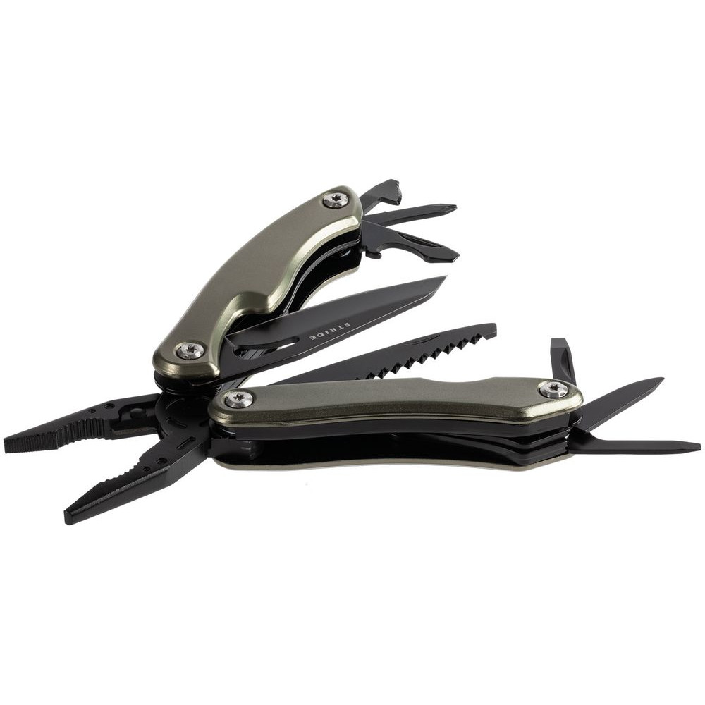 Компактный многофункциональный инструмент изготовлен из высококачественной инструментальной нержавеющей стали.