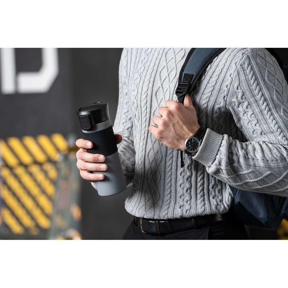 - Силиконовая манжета для комфортного и надежного удержания стакана в любую погоду.