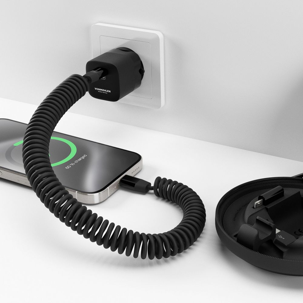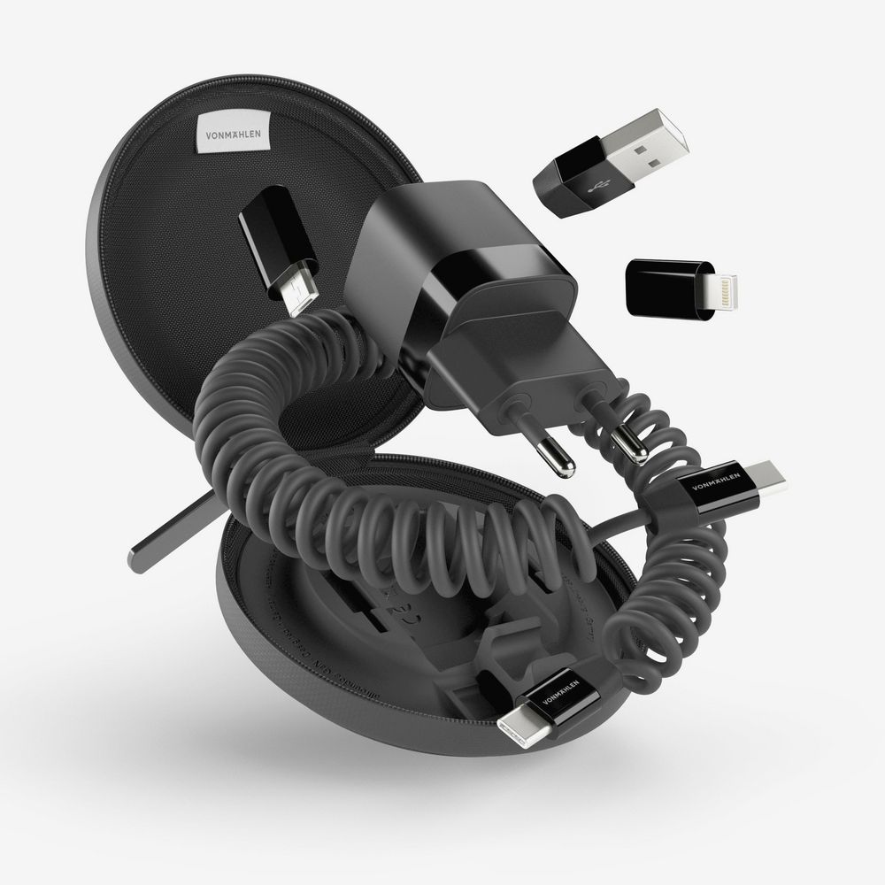 Vonmаhlen Allroundo GaN — это компактный и удобный в использовании аксессуар, сочетающий в себе зарядное устройство мощностью 30 Вт и многофункциональный кабель с переходниками для удобной зарядки самых разных устройств. Комплект переходников позволяет создать до 6 разных конфигураций зарядного кабеля, что делает его по-настоящему универсальным.