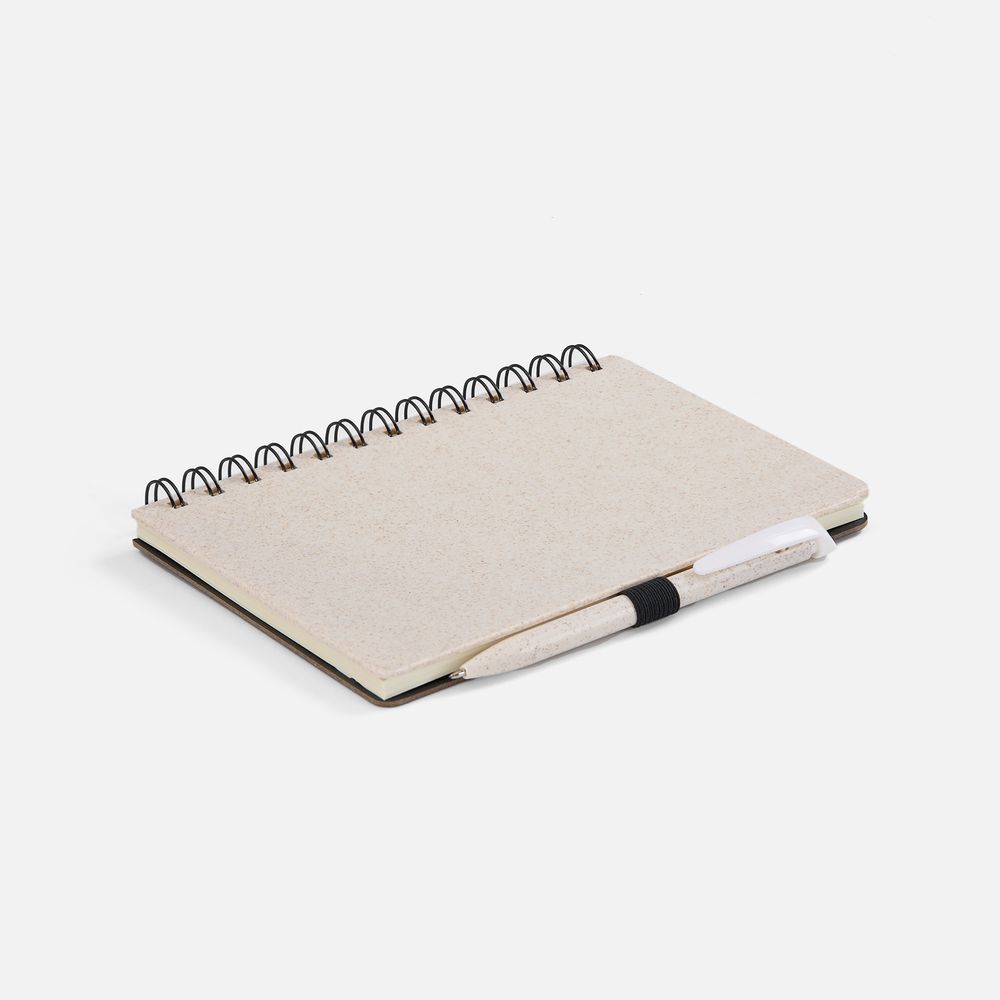 Блокнот на спирали из пшеничной соломы с резинкой для ручки.