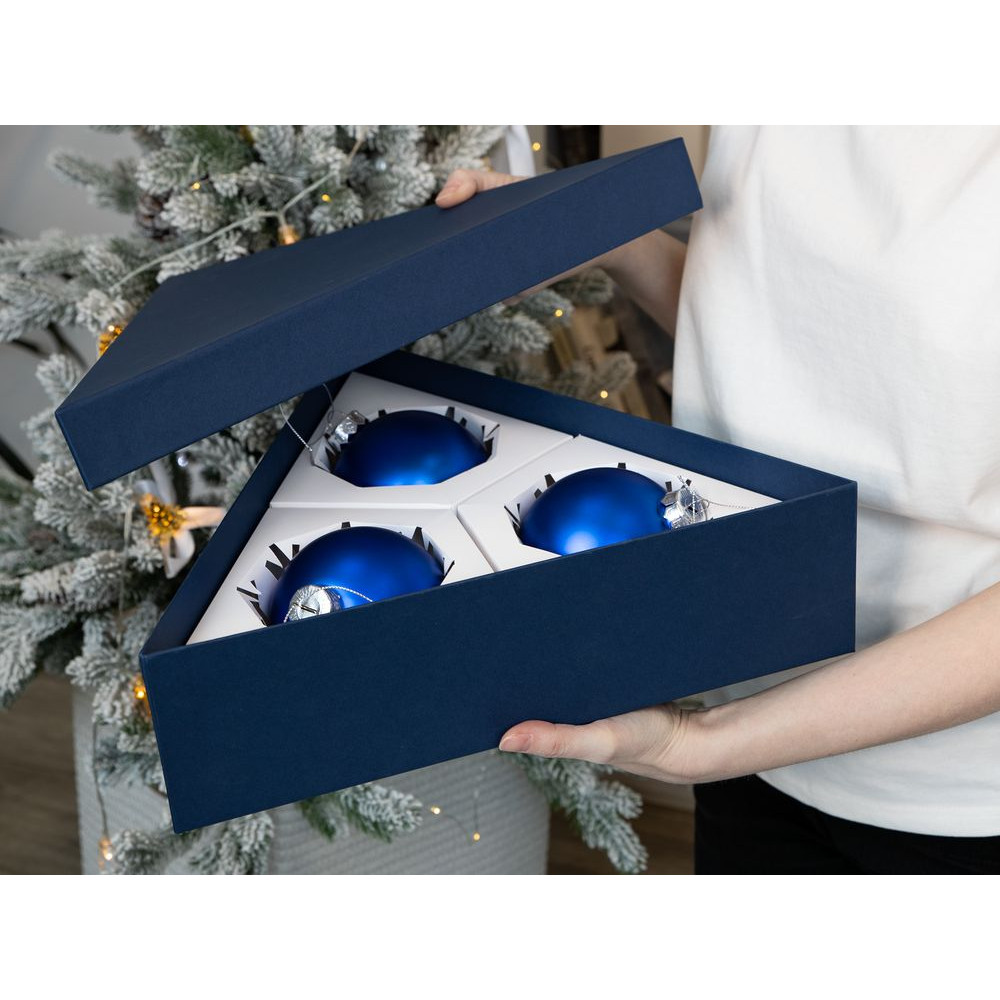 А еще Finery Trio — это маленькое произведение искусства, созданное с вниманием к деталям: шары диаметром 10 см бережно уложены в индивидуальные ложементы с изящным вырезом в форме снежинки, а стильная коробка придает подарку особую торжественность. Нестандартная треугольная форма упаковки подчеркивает оригинальность композиции и делает презент по‑настоящему запоминающимся.