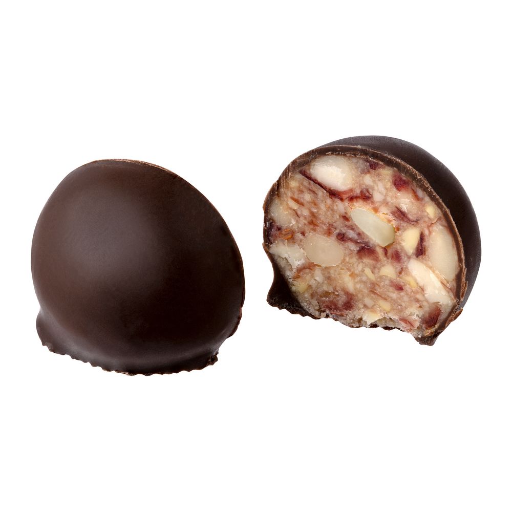 Состав: кедровый орех, орех кешью, клюква, мед натуральный, шоколадная глазурь (какао тертое, масло какао, сахар, ванилин).