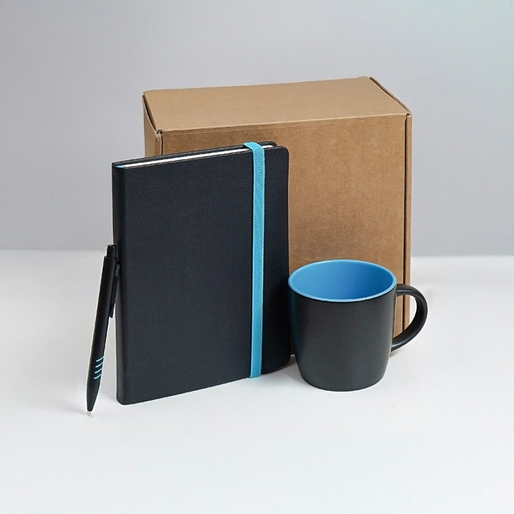 Параметры: Набор подарочный HYPER: кружка, ежедневник, ручка; черный/голубой
