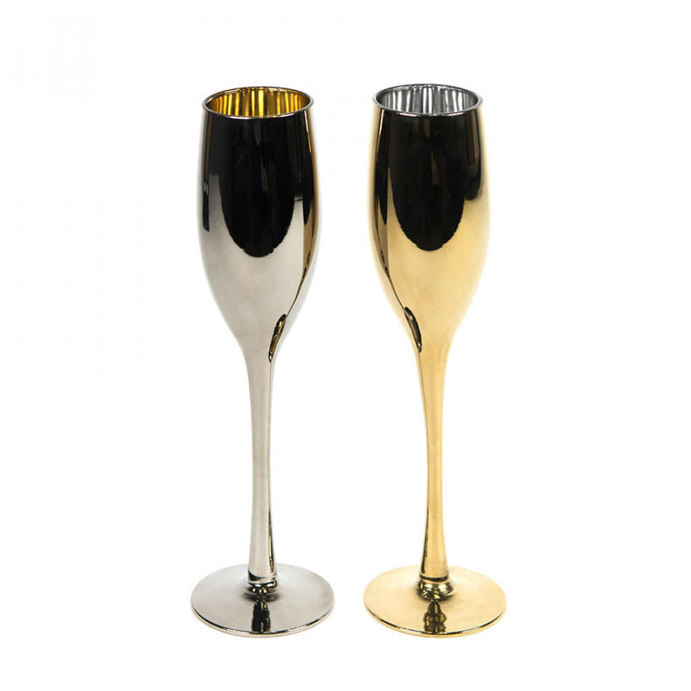 Два бокала серебряного и золотого цвета в одном наборе, как две части единого целого, идеально дополняют друг друга.